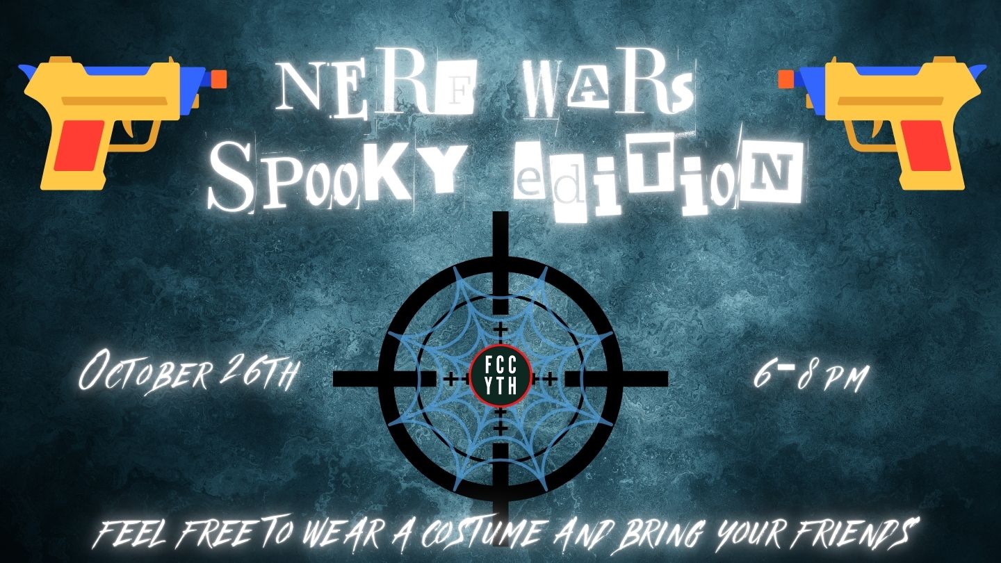 Oct 26th we will have our ANNUAL NERF WARS…this time spooky edition. Feel free to wear appropriate costumes to make this nerf war a little more fun! You are welcome to bring nerf guns and bullets, some will also be provided. See you at 6pm and invite your friends!